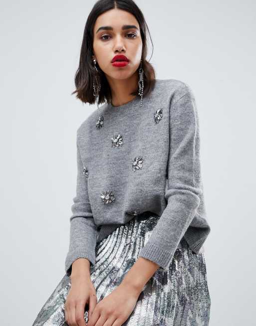 Grey sale embellished jumper