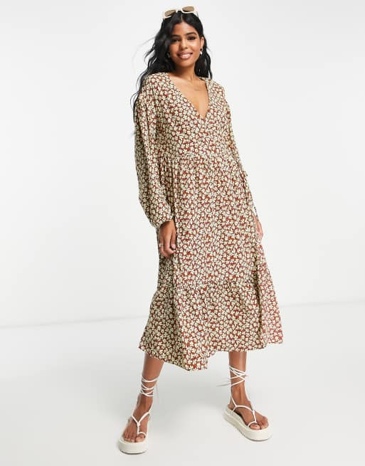 Tiered midi sale smock dress