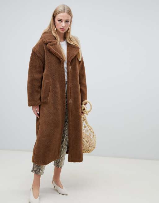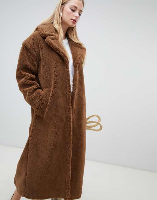 Product Item: Warehouse longline faux sale fur coat in tobacco
